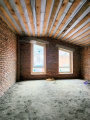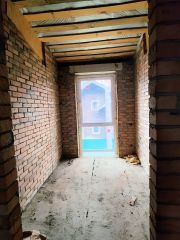 Общая площадь 100 кв.м на участке земли 5,5 сотоки .Предчистовая отделка:разводка электричества, водоснабжения и водоотведения, теплые полы в зонах общего пользования, стены оштукатурены и ошпаклеваны, стяжка пола,в комнатах установлены радиаторы,Планировка:Три спальные комнаты, общий санузел, кухня-гостиная с выходом на задний двор и террасу, тамбур,холл.По периметру участка забор из металлопрофиля. По фасаду откатные ворота, калитка. Отмостка по периметру дома, забетонирована площадка для автомобилей.Дом расположен на большом участке 5,5 сотоки ,с возможностью установить мангальную зону, поставить бассейн, выделить зону под клумбы и огород.