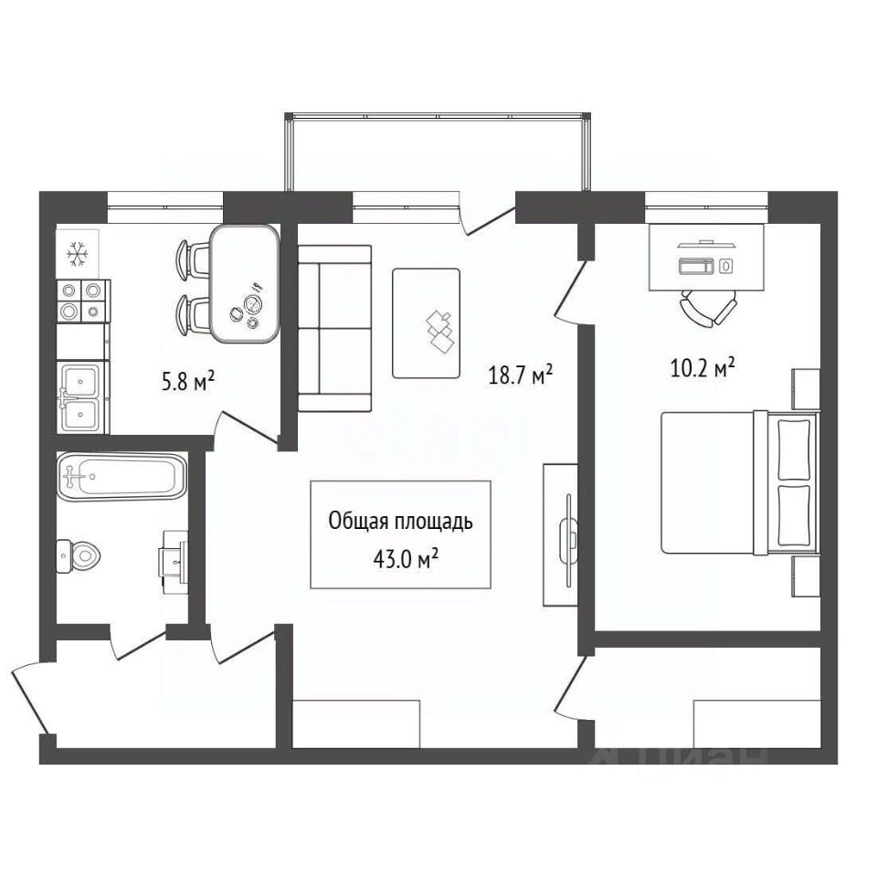43 м² · Этаж 4 из 4