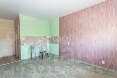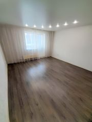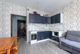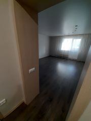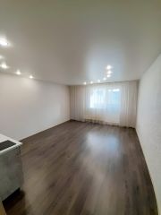 Студия в отличном состоянии, после ремонта никто не проживал. На полу положен ламинат, в санузле кафельная плитка, потолок натяжной, лоджия застеклена пластиком. Установлен новый кухонный гарнитур. Один собственник, ключи в день расчета.