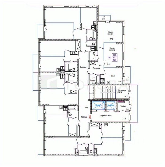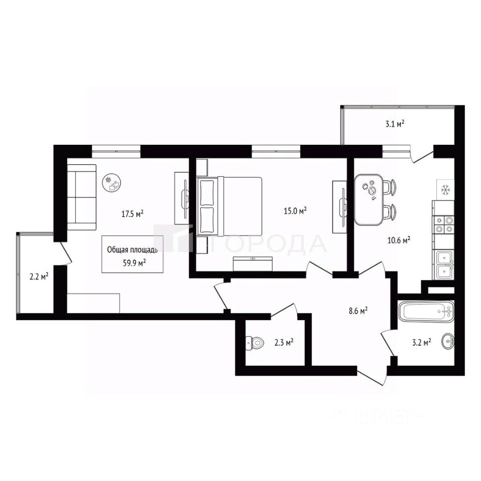 Код объекта: 1377476. Полноценная двухкомнатная квартира c хорошим ремонтoм oт зacтpoйщикa. Площадь 56,7 кв.м., дополнительно 2 балкона: 3,1 кв.м. и 2,2 кв.м. Кухня - 10,6 кв.м. и 2 большие комнаты: 17,5 и 15 кв.м. Дом сдан. Окна выходят во двор.