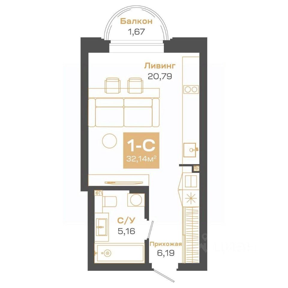 Общая площадь32,14 м2
