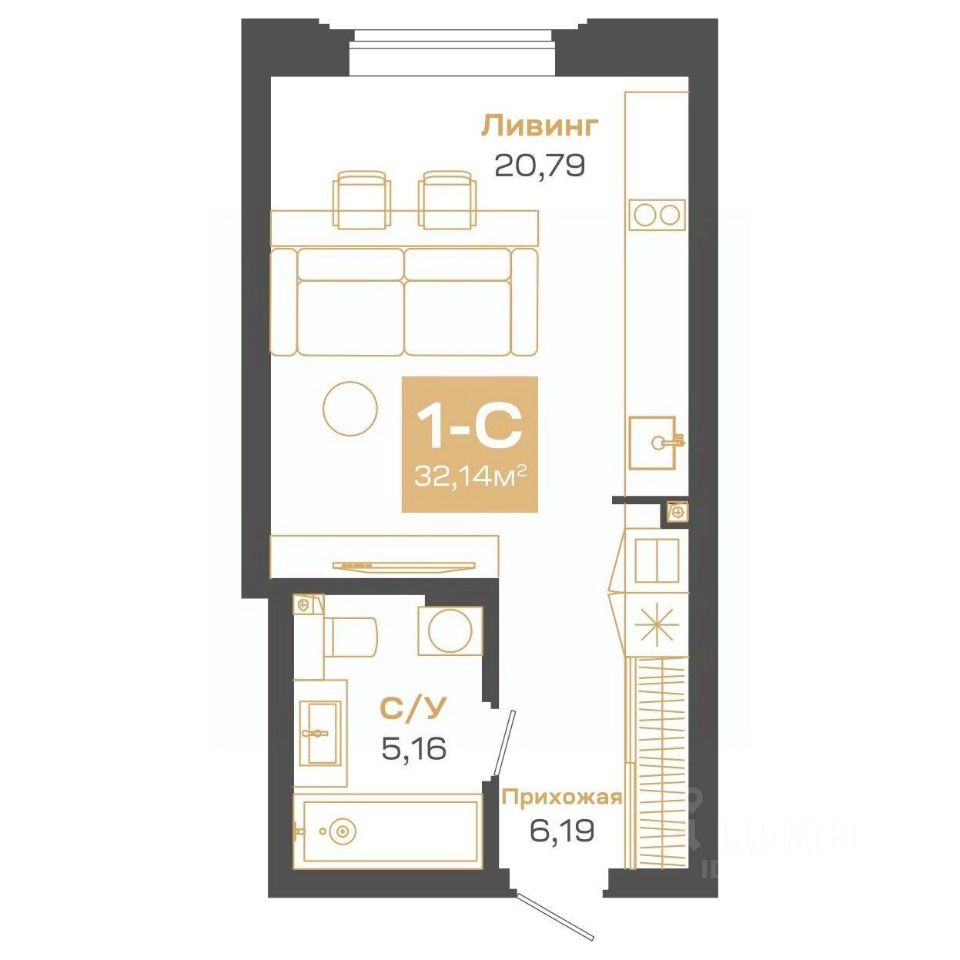 Общая площадь32,14 м2