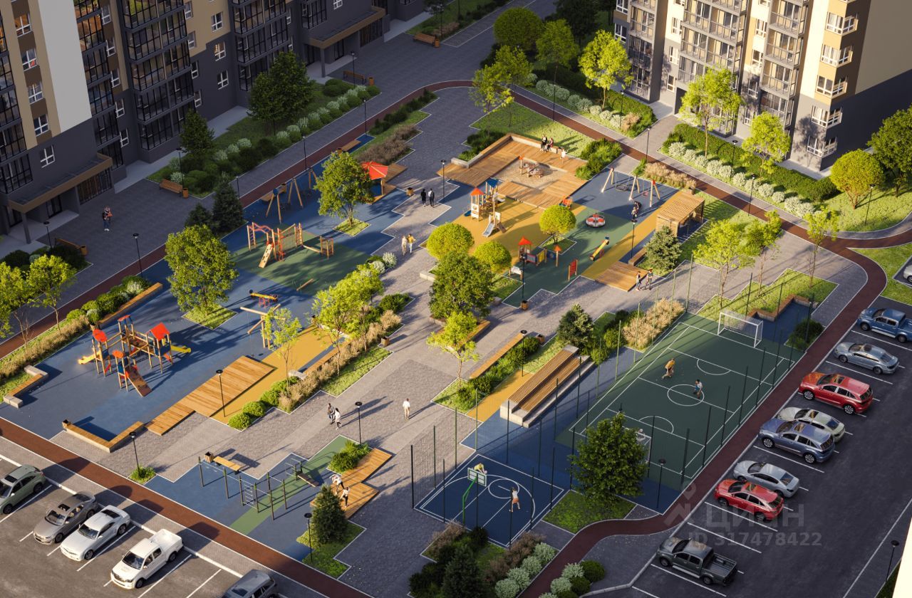 В каждом дворе — современные детские площадки из природного материала для детей разного возраста, уличные тренажеры, а также безопасные велодорожки. В проектировании дворов учтены самые разные варианты детского отдыха и игр, а том числе спортивные площадки. Также на территории планируется провести озеленение и благоустройство удобными пешеходными дорожками, скамейками и уютными беседками. Двор-парк это особенное пространство, которое объединяет разных людей жителей квартала.
