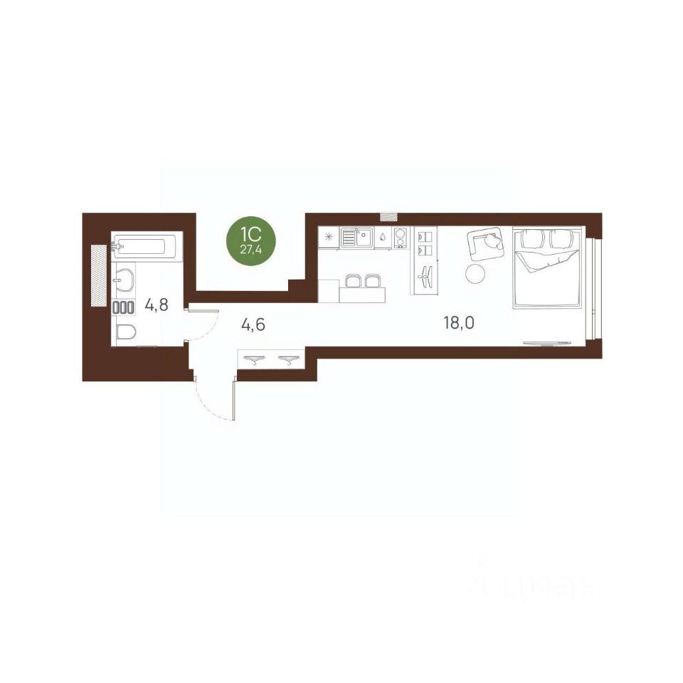 Общая площадь27,4 м2