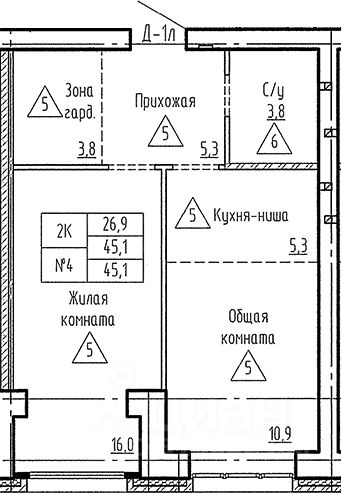 Общая площадь45,1 м2