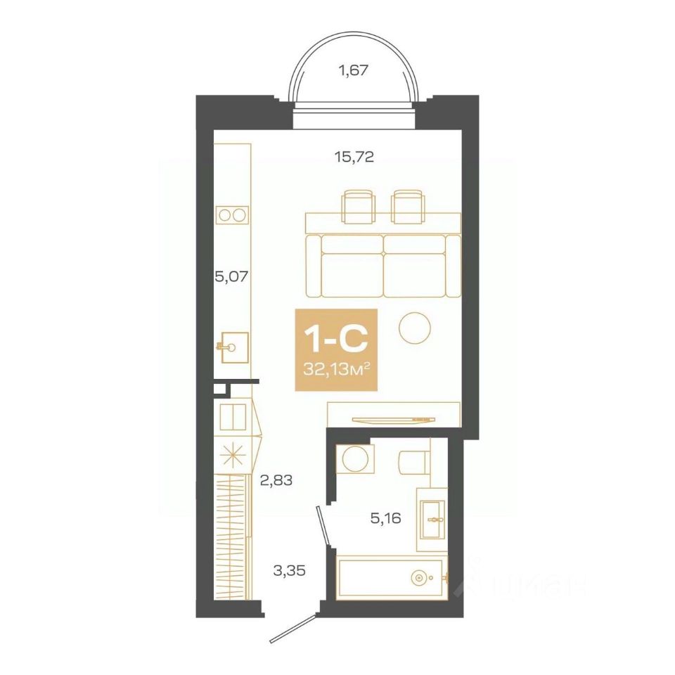 Общая площадь32,13 м2