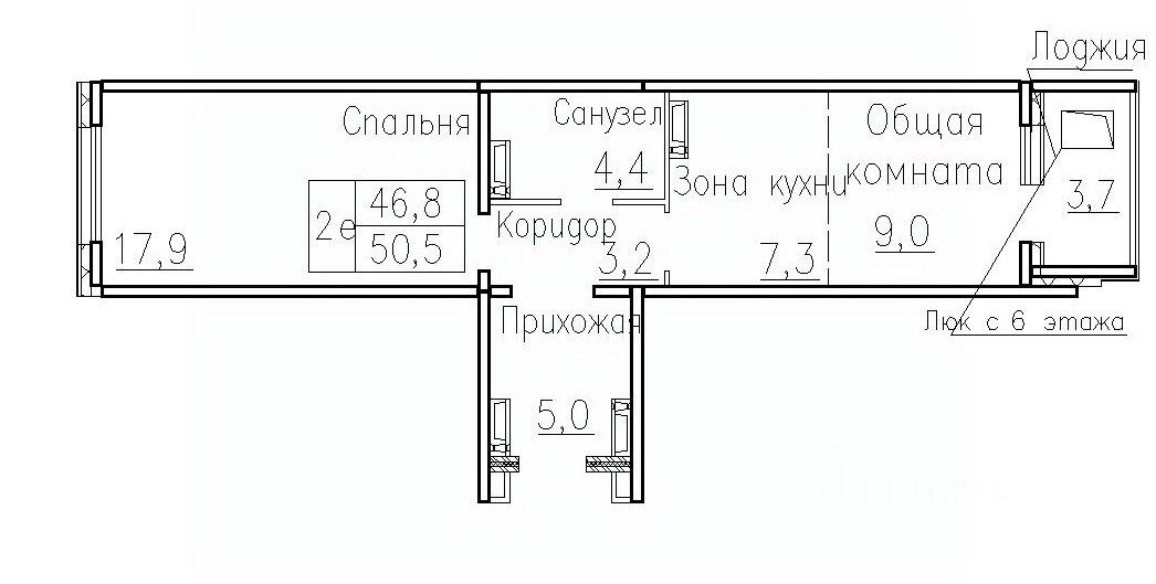 Общая площадь50,5 м2