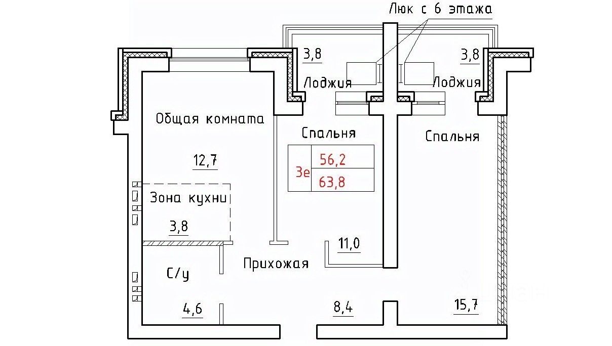Общая площадь63,7 м2