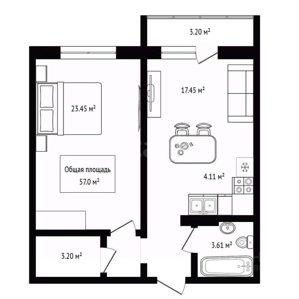 В продаже большая евродвушка с просторной кухней-гостиной!