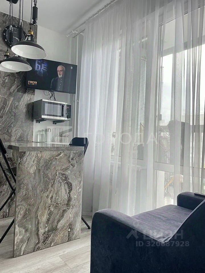 Квартира расположена в середине дома, солнечная, с уютным балконом с панорамными окнами — отличное место для отдыха и вдохновения.