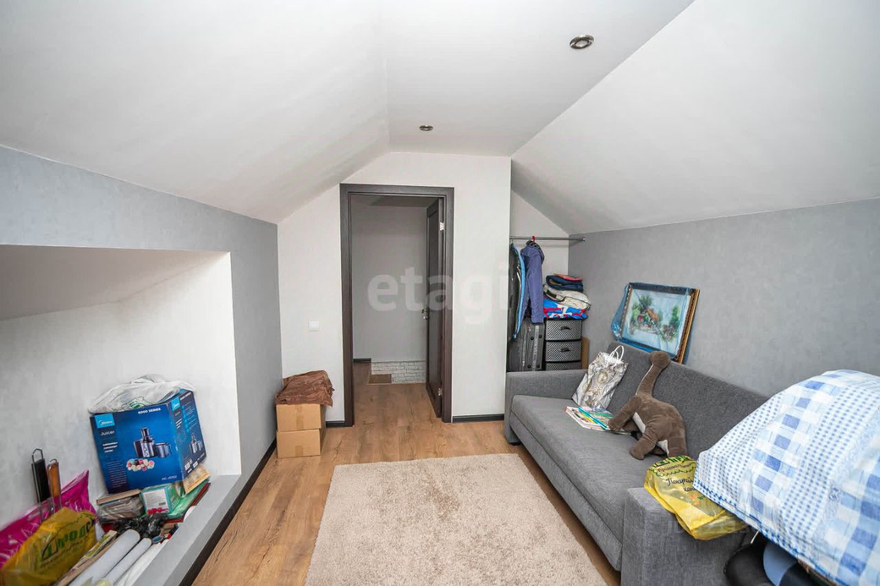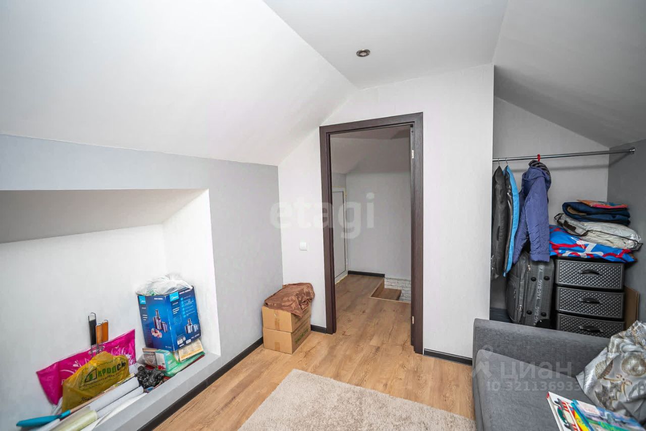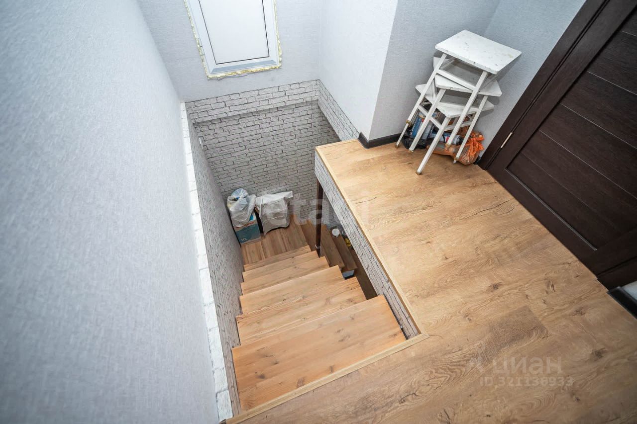 На стенах обои в спокойной цветовой гамме, на полу ламинат. В ванной комнате кафель. В коридоре система теплый пол. Лестница деревянная на металлическом каркасе. Окна во всем доме пластиковые 5-камерные. Отопление электро-батареи. Качественная входная дверь.