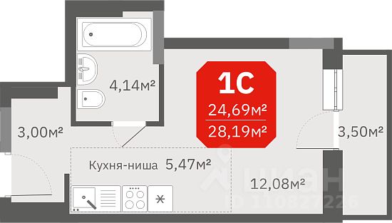 Продаётся студия в строящемся доме (Дом 1), срок сдачи: II-кв. 2026, общей площадью 28.19 кв.м., на 3 этаже. Новый жилой комплекс ''Гвардия'' от Группы компаний ''СМСС'' расположен в Ленинском районе Новосибирска на ул. Связистов.