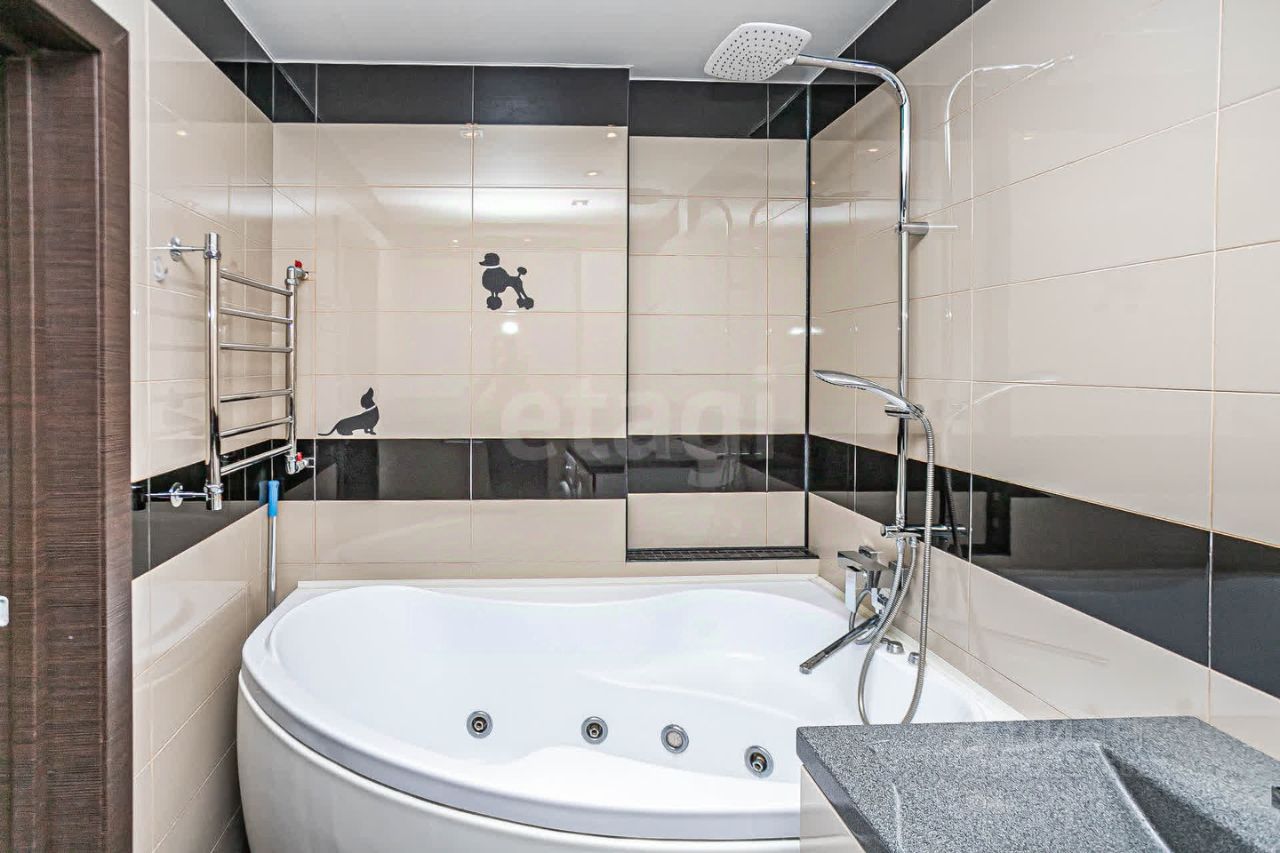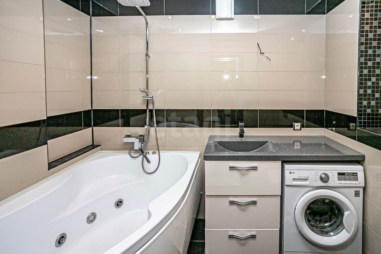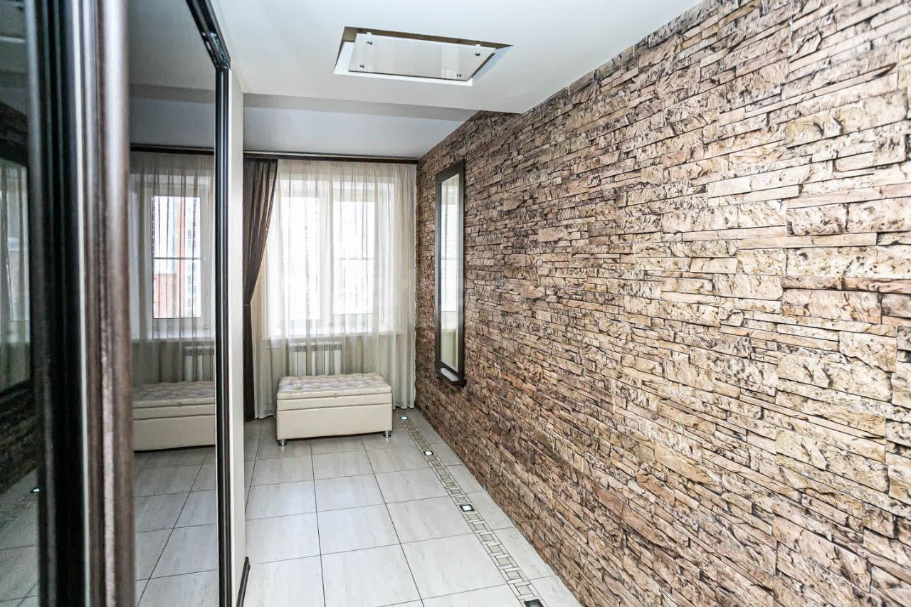 Ремонт выполнен по дизайн-проекту с использованием качественных материалов: натяжные потолки, освещение разделено на зоны, современная отделка.