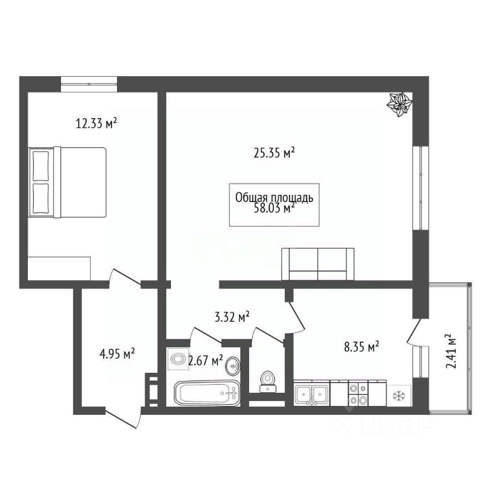 Сан узел раздельный.