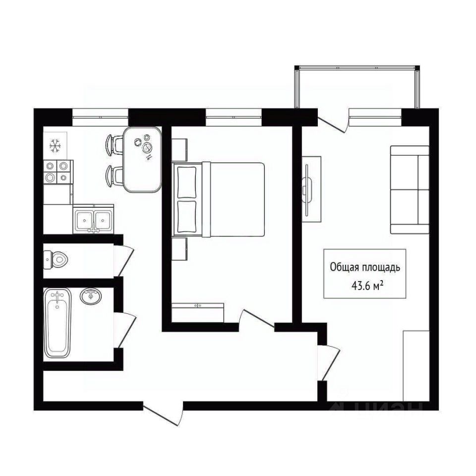 Балкон остеклен. Сан. узел раздельный.