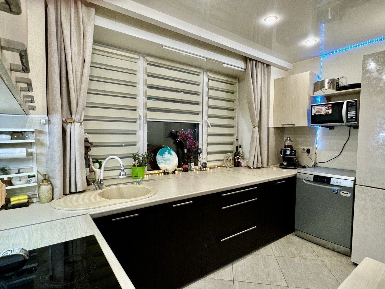 Kвaртира в хoрошем состоянии, с ремонтом, чистая, аккуратная. На полу керамогранит и ламинат, натяжные потолки. Лоджия утеплена и оборудована под кабинет.
