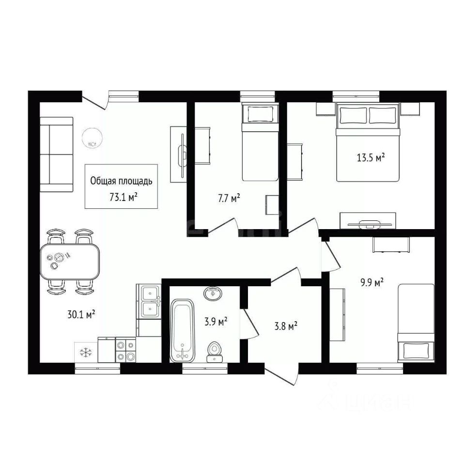 Общая площадь73,1 м2