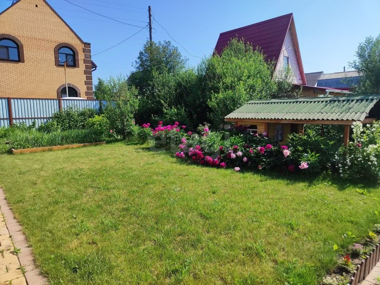 Парковка на 2 машины, для каждой - свои двустворчатые распашные ворота. На участке уложено 9 поддонов плитки (персик/шоколад) с отсыпанной на геотекстиль подушкой из щебня и песка. 2 больших газона для отдыха и игр в бадминтон, мяч, можно поставить стол для тенниса. 5 грядок из крашенной лиственницы - под клубнику и зелень. Огромный плодоносящий вишневый сад (более 50 л. вишни в сезон!), яблони, плодовые кустарники. Теплица 6 х 3 метра. Бытовка с туалетом слева и курятником справа (позволяет держать около 10 птиц). Детская песочница с домиком - для ребятишек. Разводка воды по участку из ПНД-трубы. Большие качели, батут, мебель (набор из дивана и кресла-трансформера), кух. гарнитур (Леруа) останутся вам!