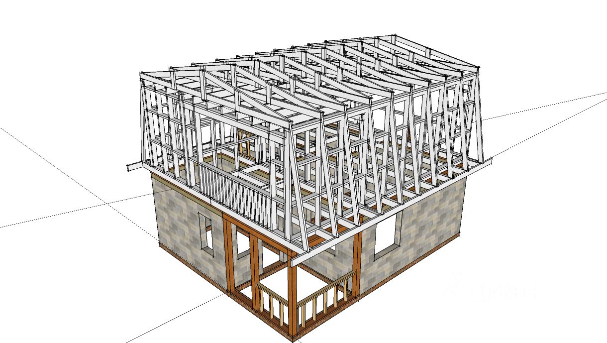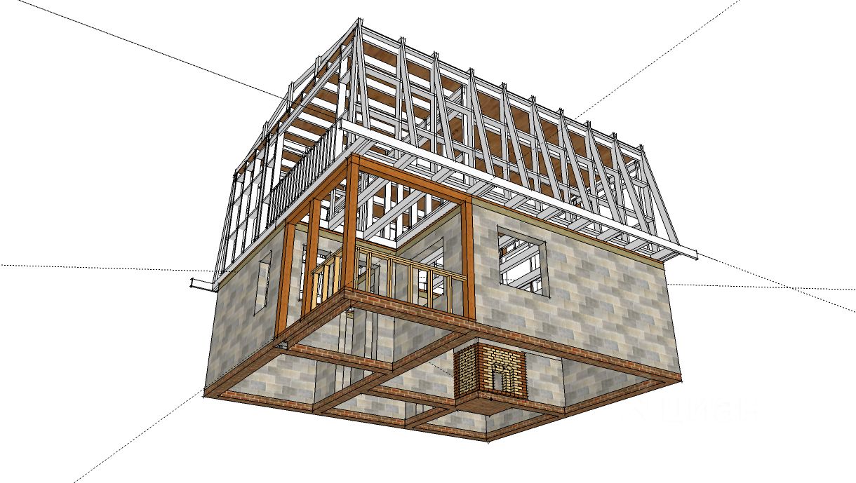 2 этаж: Каркас - полностью из лиственницы! Кровля - металлочерепица на контррейке с гидроизоляционной мембраной. Изнутри 2 эт. не обшит и не обжит (лестница - времянка), полностью вам под самоотделку и зонирование.