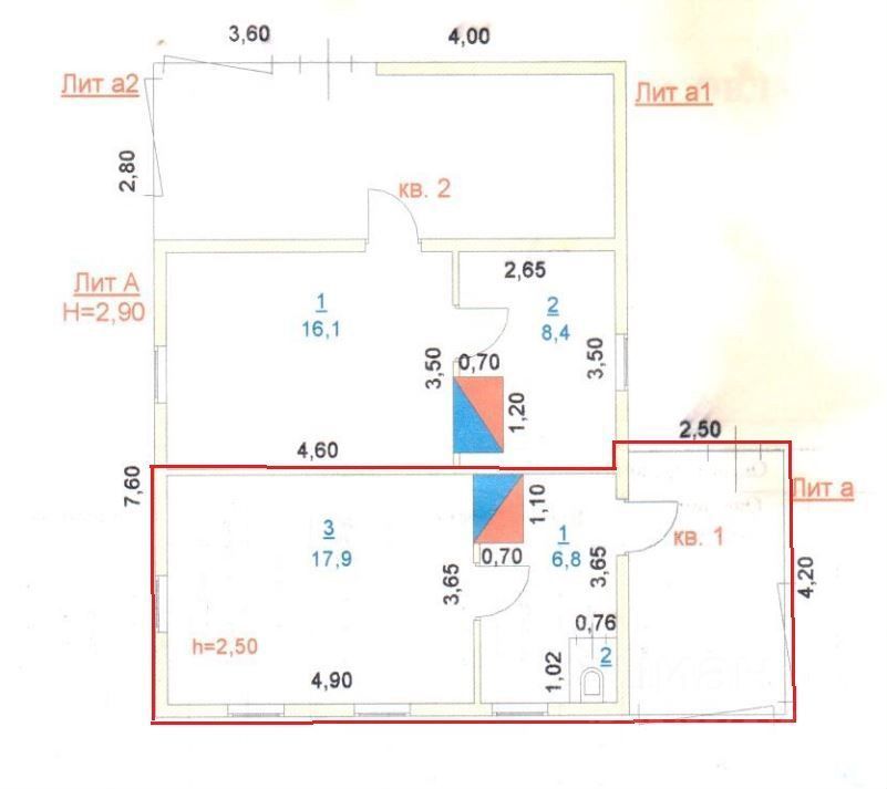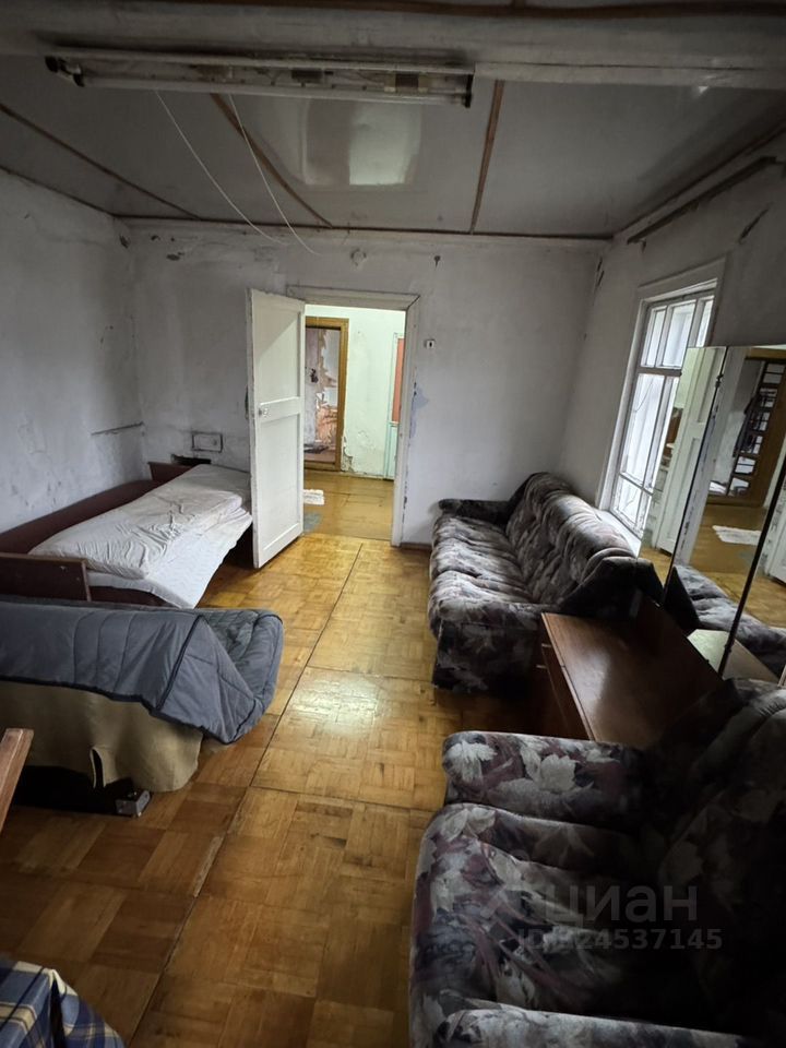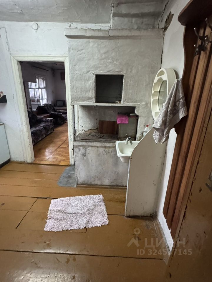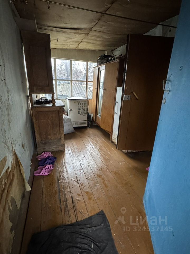 1/2 дома имеет общую площадь 25,5 кв. М., из бруса, одна комната 17,9 кв. М., кухня 6,8 кв. М, санузел 0,77 кв. М., фундамент крепкий, отопление печное, газ по границе без проблем проводиться по программе догазификации, баня на участке.