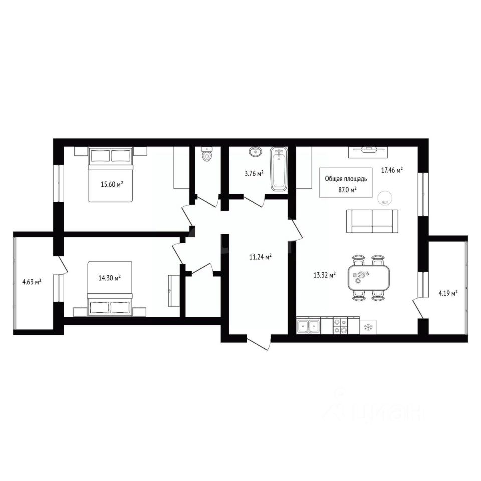 Общая площадь: 87 кв.м.