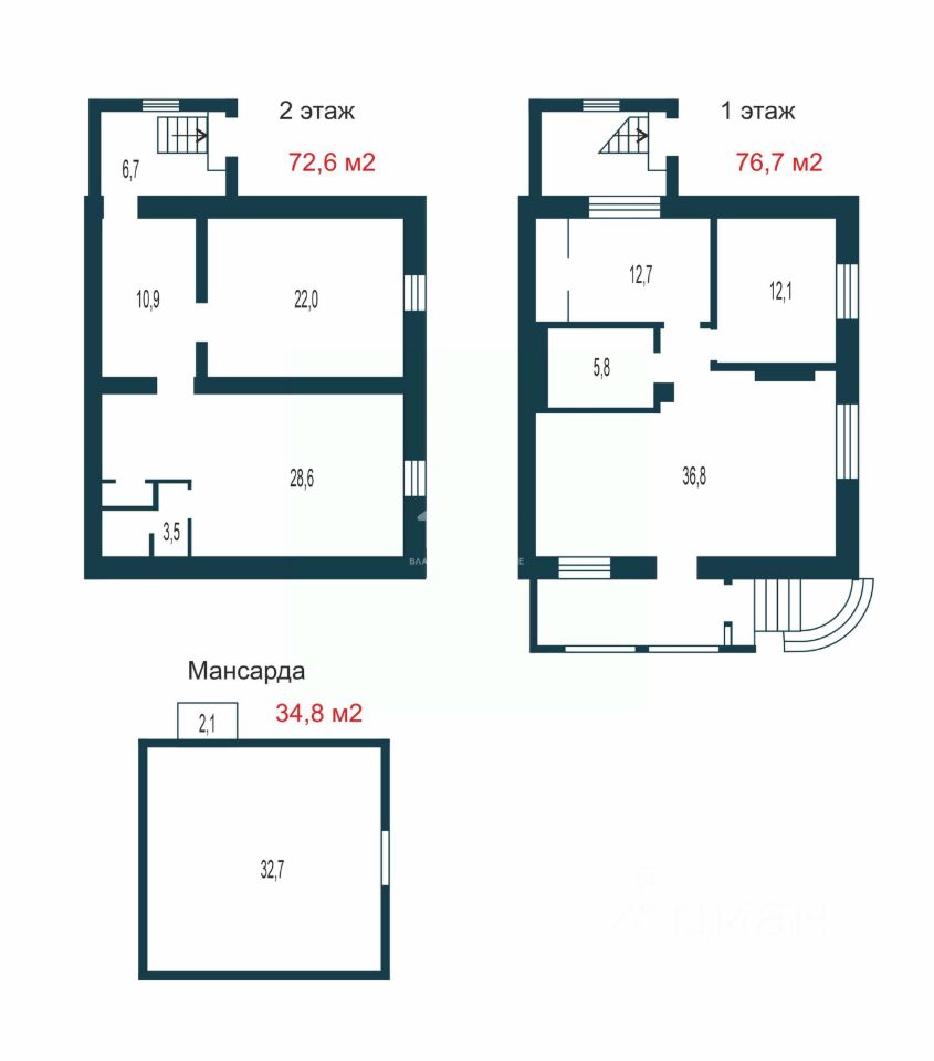 -На мансарде одна большая комната площадью 32,7 м.кв , лоджия 2.1 м. кв. На мансарде можно разместить различные помещения, включая спальню, детские комнаты, кабинет и пр.