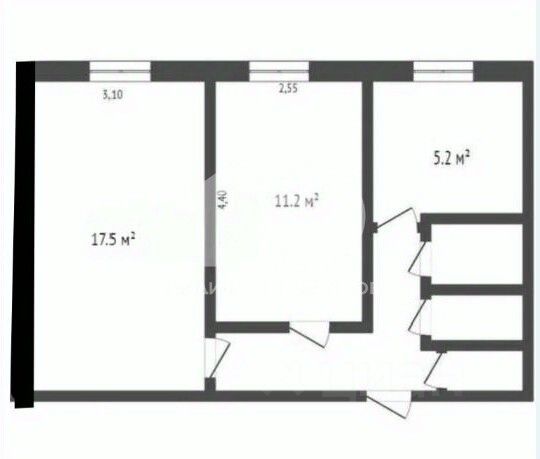 Общая площадь квартиры составляет 43,6 кв. м, из которых 28,7 кв. м — жилая площадь. Две изолированные комнаты (17,5 кв. м и 11,2 кв. м) обеспечивают комфортное размещение для всех членов семьи. Высота потолков 2,6 м создаёт ощущение простора.