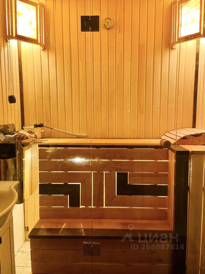 Планировка: большая изолированная спальня с французским окном, изолированная детская, просторная кухня+гостиная с обеденной зоной, гардеробная, кладовая (постирочная), 2 совмещённых санузла (в одном - душевая, в другом - ванная с гидромассажем и встроенная сауна), утепленная лоджия с полным фасадным остеклением.